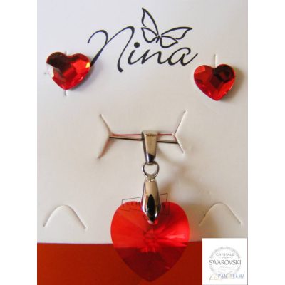 Swarovski elements piros szív alakú kristály, gyönyörűen csillogó medál. A fémrésze orvosi acél.