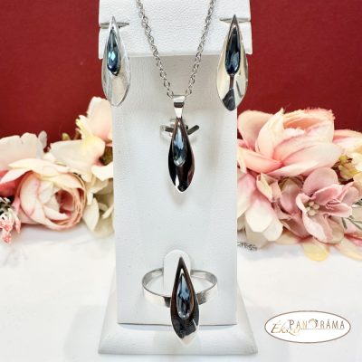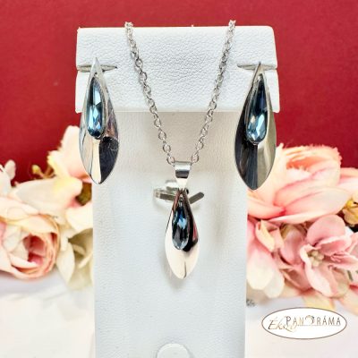 Eredeti kristállyal díszített ékszer szett, amihez eredeti kristály kapcsos fülbevaló, és nemesacél nyaklánc tartozik egy gyönyörű csepp alakú medállal!