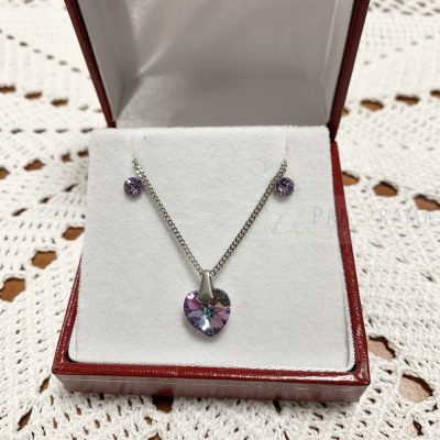 Swanis® kristályos fülbevaló és nyaklánc szett- violet