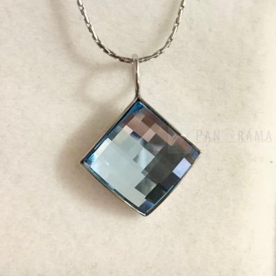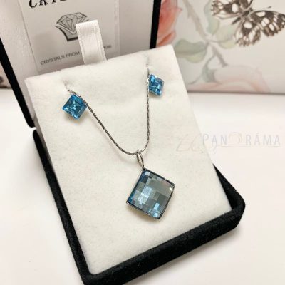 Swanis® kristályos beszúrós szögletes fülbevaló, hozzá illő különleges csiszolású medál acél lánccal.