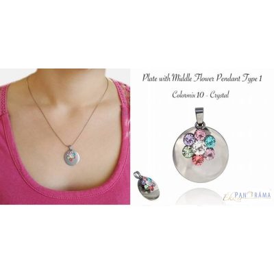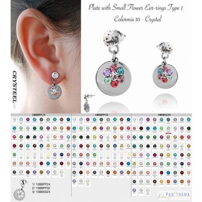 A szetthez tartozikegy pár e kristályos lógós fülbevaló, és nemesacél nyakláncon egy virág alakú kristélyokból álló medál . Többféle színben rendelhető.