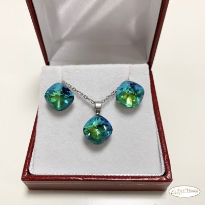 Káprázatos csillogás, elegancia és minimál stílus jellemzi ezt a gyönyörű swanis® kristályos medálos láncot és fülbevalót! A párna kristályok 12 mm , orvosi acél alappal készülnek.