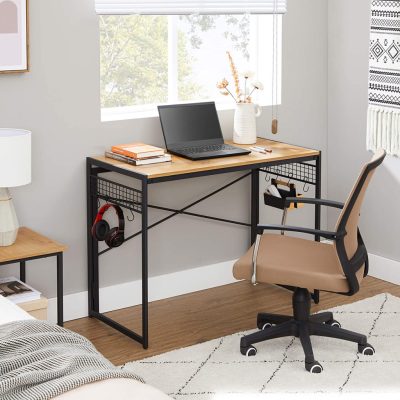 • Számítógépes asztal, összecsukható íróasztal 8 kampóval, mézbarna