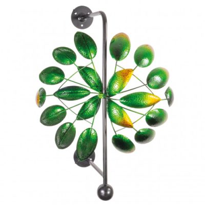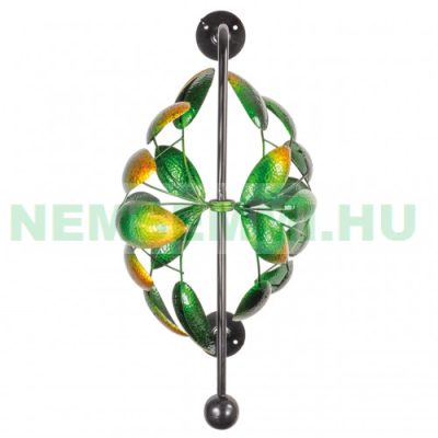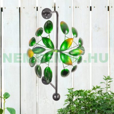 Ez a szélkerék egy kivételesen szép fali dekoráció. Forgatáskor a vibráló zöld színű szélkerék optikai 3D hatást kelt. A lapátokat egyedi ívelt levelek borítják, amelyek a tartó tengelye körül forognak.