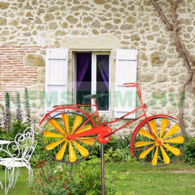 • Szélkerék retro hatású narancssárga bicikli szélforgó dísz játék földbe szúrható kerti dekoráció antik hatású