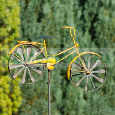 Szélkerék retro hatású sárga bicikli szélforgó dísz játék földbe szúrható kerti dekoráció antik hatású