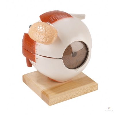 A szaruhártya külső részén a nagy könnymirigy, az izomkötegek, a látóideg és az erek találhatók. A belső jellemzők tanulmányozásához a szivárványhártya/szaruhártya egység eltávolítható, akárcsak a funkcionális lucitlencse, amely nagyít és fordított képet készít. Az átlátszó üvegtest eltávolításával láthatóvá válik a kéreghártya és a retina, a vakfolttal és a foveát tartalmazó sárga foltokkal együtt. A pálcikák, csapok és egyéb retinamikrostruktúrák részletesen kirajzolódnak egy nagyra nagyított, diagramszerű keresztmetszetben. Fából készült talapzatra szerelve.