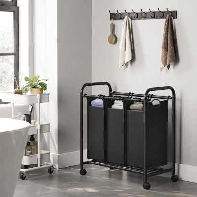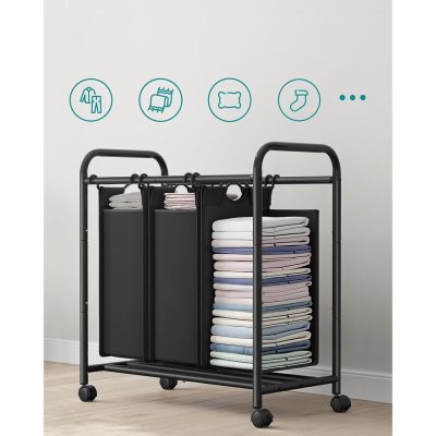 Mivel a piszkos ruhák egy mozgalmas hét során felhalmozódnak, nagy segítség, ha szétválasztjuk és elrakjuk őket, hogy később moshassuk.Tökéletes megoldásra van szüksége a mosoda rendszerezéséhez?A 3 zacskós mosodai kocsi nagy kapacitással rendelkezik, és hatékonyan tudja szétválasztani a ruhákat, és távol tartja a rendetlenséget a padlótól.