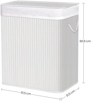 • KÖTELEZŐ – 52,5 x 32,3 x 61 cm (H x SZ x Ma) méretű, tetővel ellátott, bambusz rácsos szennyeskosár jelentős, 100 literes űrtartalommal rendelkezik, így az összes piszkos ruháját tárolhatja, hogy otthona rendben legyen.