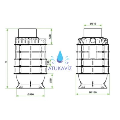 A szennyvízátemelő akna 1000mm átmérőjű, magassága (H) 2500mm.