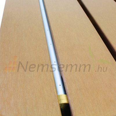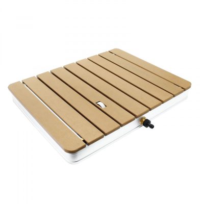 A szökőkút zuhany 22 vízfúvókával rendelkezik, amelyekből a frissítő szökőkutak permetezik a vizet. A megfelelő vízellátáshoz elegendő egy szabványos kerti slag (3/4"). A kerti zuhany padlófelülete teakfa megjelenésű kompozit fából és alumíniumból készült keretből áll. Ez teszi a zuhanyt abszolút robosztussá. A felhasznált anyagok víz- és időjárásállóvá teszik a zuhanyzót, így Ön hosszú ideig élvezheti azt.