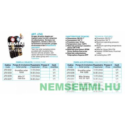 • Szolár szivattyú állomás 1 oldali Tiemme olasz Automata teljesítményvezérlésű szivattyúval napkollektor rendszer számára