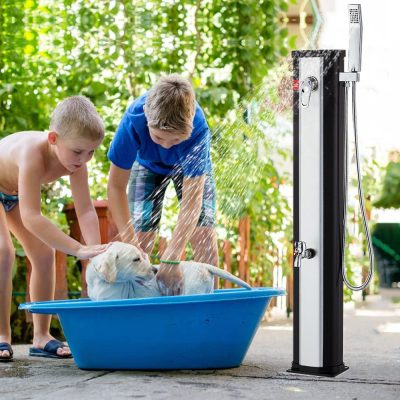 • Szolár zuhany 20 literes félmagas, keverőcsappal zuhanyslaggal és zuhany rózsával. Szolárzuhany