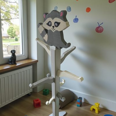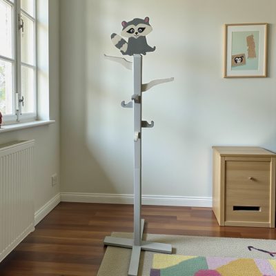 Szürke gyermek szobainas fából, mosómedve dísszel