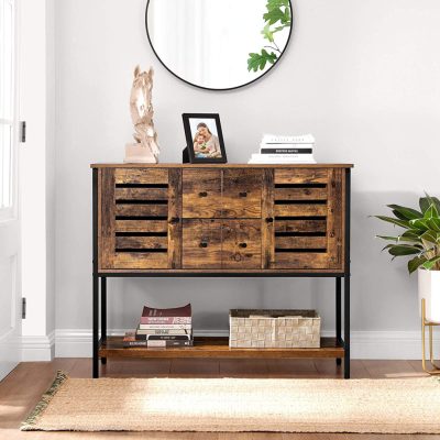 A rusztikus barna panelekkel és fekete fémmel ez a szekrény ipari hangulatot kölcsönöz, hogy otthona semmihez sem hasonlítható legyen.