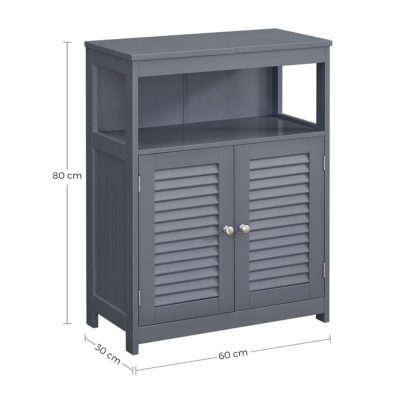 fürdőszobai padlós tárolószekrény, szabadon álló dupla lamellás ajtókkal és állítható polccal, szürke: