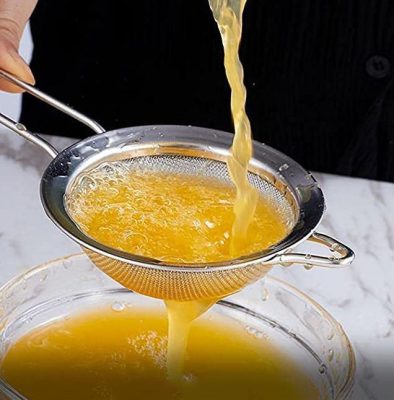 • Kialakítás: Finom szövésű acélháló, stabil peremmel