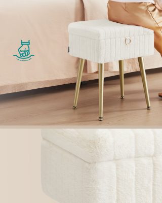 Tárolós, téglalap alakú sminkasztal szék, fém lábakkal, nappaliba, hálószobába, sminkszobába, fehér színben