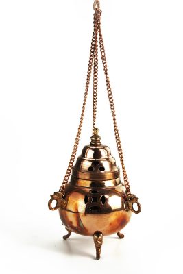 • Templomi füstölő vörösrézből lánccal – kézi és függeszthető szertartásos füstölő, turibulum