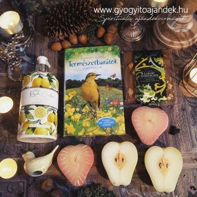 Természetbarát ajándékcsomag akár gyerkeknek vagy felnőtteknek is:) Ha van olyan gyermek a családban, aki megnéz minden madarat, fát és bogarat, igazi kis természetjáró, szívvel-lélekkel rajong az állatokért, akkor ez a kis csomag biztosan megszólítja majd őt. A Természetbarátok zsebkönyve segítségével akár együtt is be tudjátok azonosítani az erdők-mezők élővilágát. A csomagban egy finom kézműves csoki, luxus folyékony szappan és csodaszép gyümölcs alakú gyertyák is vannak, melyek fényénél este a teraszon megoszthatjátok az aznapi természetjárás élményét.