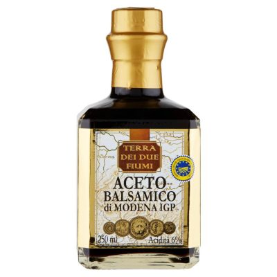 Terra balzsamecet, 250 ml. Összetevők: főtt szőlőmust, borecet. Átlagos tápérték 100g termékben: Energia: 804 kJ/ 189 kcal, Zsír: 0 g, ebből telített zsírsavak: 0 g, Szénhidrát: 41 g, ebből cukrok: 40 g, Fehérjék: 1,7 g, Só: 0,01 g. Minőségét megőrzi a csomagoláson feltüntetett időpontig. Hűvös, száraz helyen tárolandó. Származási ország: Olaszország.