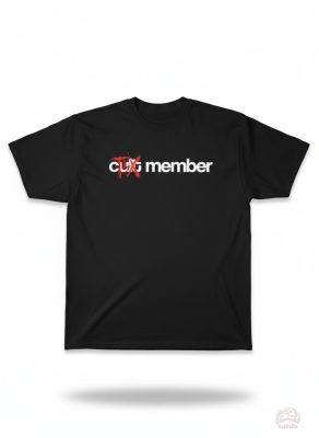 Egyedi grafika: A póló elején stílusos, kontrasztos „member” felirat látható, amelyet egy merész, vörös „X” motívum tesz egyedivé.