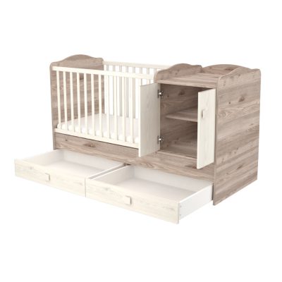 Ez a modell a maximális kényelmet és funkcionalitást kínálja: a kiságyhoz beépített pelenkázó, komód és tágas tárolórészek tartoznak, így mindent egy helyen találsz, amire a babagondozás során szükséged lehet.