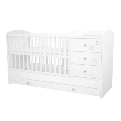 • Timba Félix bababútorszett fehér csillagos mintával – praktikus babaszoba bútor ajándék pelenkázólappal