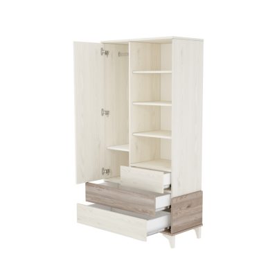 A Timba Kloé krém-fűz szekrény sokoldalúságával és finom megjelenésével hosszú távon is megbízható társ a babaszoba berendezésében. A praktikus tárolók segítenek, hogy minden játék, ruha és kiegészítő megtalálja a helyét.