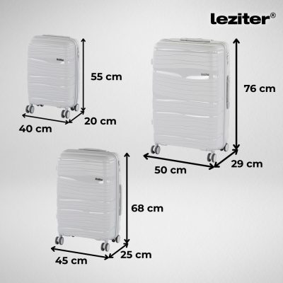 A Leziter TraveLux Voyager XI bőröndszett a legjobb választás rövidebb és hosszabb utazásokhoz egyaránt. A kabinbőrönd ideális 1–3 napos utakhoz, a közepes méret rövidebb nyaralásokhoz vagy üzleti utakhoz, míg a nagy bőrönd tökéletes családi nyaralásokhoz vagy hosszabb tartózkodáshoz. A három méret kombinációja teljes rugalmasságot biztosít, miközben egységes, elegáns megjelenésével harmonikus szettként használható.