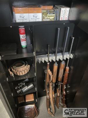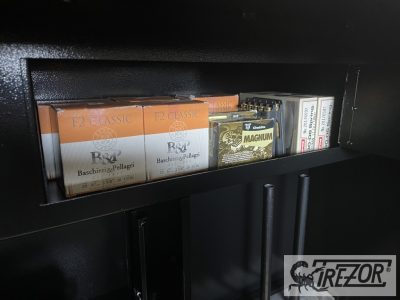 - Külön zárható lőszertartó rekesz (mérete: 185 x 745 x 180 mm),