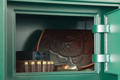 A biztonságosabb tárolás érdekében rögzítő furatok kerültek a szekrény hátoldalára és aljára, mely segítségével egyszerűen rögzíthető a fegyverszekrény falhoz vagy padlóhoz,