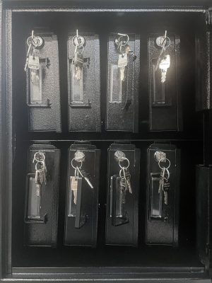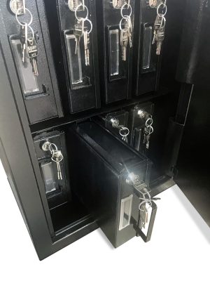 A szekrény biztonsággal megőrzi a fegyvertároló kazettát, mely egy mozdulattal, kulcs segítségével praktikusan kiemelhető, így a kazettában a fegyver a lőtérre vagy a szolgálati helyre biztonságosan szállítható