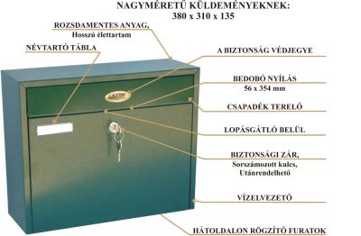 A bedobó nyílást takaró kicsi ajtó konstrukciója megakadályozza, hogy a csapadékvíz visszafolyjon a postaládába,