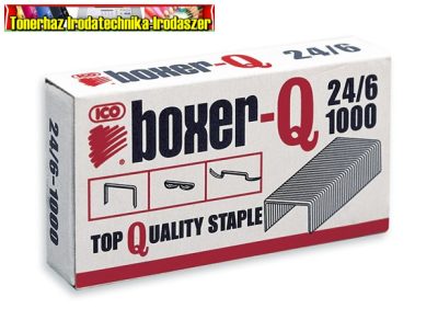 Tűzőkapocs, 24/6, horganyzott, BOXER-Q 1000db/dob (fehér dobozos)