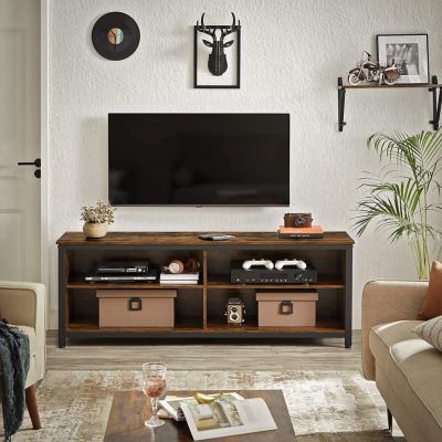 • Rugalmas tárolóhely szerint rendezve: 2 állítható polccal ez a TV-asztal 4 nyitott polcot kínál, hogy elférjen a különböző méretű tárgyak, és típus szerint rendezze őket, a könyvektől és dekorációtól a hangszórókig és játékkonzolokig.
