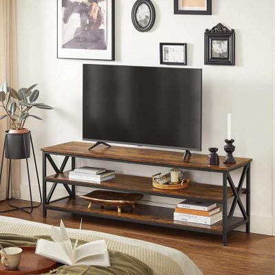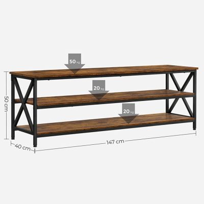 Vasagle TV-polc, TV-szekrény, 147 x 40 x 50 cm, TV-asztal nyitott rekesszel, X-alakú támasztékok, Ipari kivitel, Vintage barna/fekete: