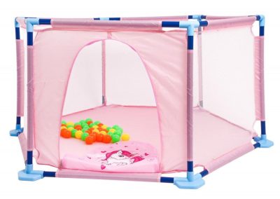 A járóka öt fala hálóból készült, ami lehetővé teszi a baba megfigyelését játék közben. Az egyik fal cipzárral rendelkezik a könnyű be- és kilépés érdekében. A járókához 40 színes golyó tartozik.