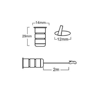 • UNIVERSO Bútorba építhető lámpa DC:12v 1w 10lm 6500k IP20 Króm D14x29mm kivágás:D12mm