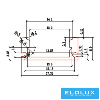 • UNIVERSO mennyezetre aluprofil matt fehér fedlappal+végzáró 2m 17.35*6.9mm