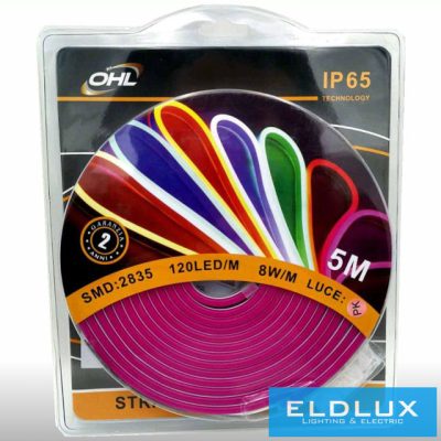 UNIVERSO Neon LED szalag 12v 2835-120D-8w/M Rózsaszín IP65 5M
