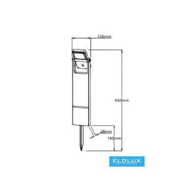 • UNIVERSO Solar kerti lámpa 3.7V-2.2AH 5V-2w 200lm CCT.kap IP65 fekete 650x106x28mm