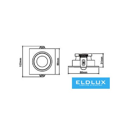 • UNIVERSO süllyesztett spot lámpa 1xGU10 IP20 88x88x31mm kivágás:75X75mm fekete 5év