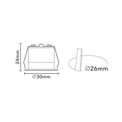 • UNIVERSO Süllyesztett spot lámpa 3w 130lm 2700K-4000K.Kap RA90 26° IP20 Fehér D30x24mm kivágás:26mm 5év