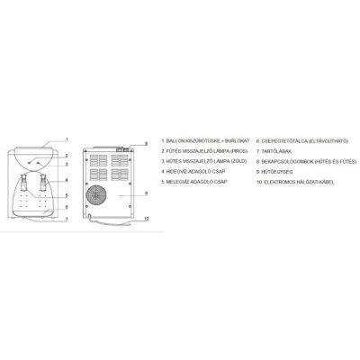 V52EW fehér asztali ballonos vízadagoló berendezés( nem kompresszoros) elektromos