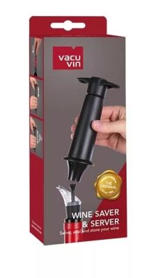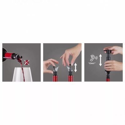 Ez a 2 az 1-ben eszköz egy vákuumpumpából és egy kiöntőből áll. A kiöntő kialakításának köszönhetően elvezeti a bor cseppeket és visszafolyatja azokat az üvegbe, így nem hagy foltot. A vákuumpumpa segítségével vákuumot hozhat létre a palackban, amely megóvja a bort az oxidálódástól és frissen tartja.