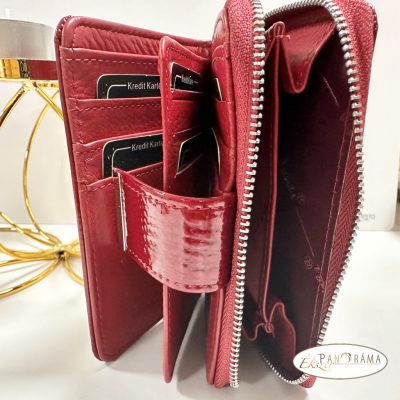 Női bőr pénztárca Rfid védelemmel- lakkbőr meggy színű krokodilbőr mintázattal