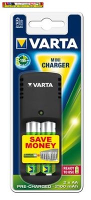 VARTA Mini Elemtöltő, AA ceruza/AAA mikro, + 2x2100 mAh AA, tölthető elem