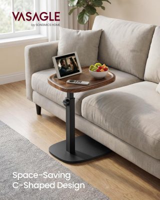 • VASAGLE C-alakú kanapéasztal, állítható magasságú lerakóasztal, dió és fekete