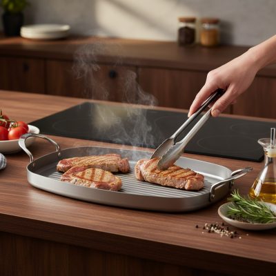 • Barázd felület: A grillcsíkok kialakítása nemcsak esztétikai szempontból előnyös, hanem segít a felesleges zsír elvezetésében is.